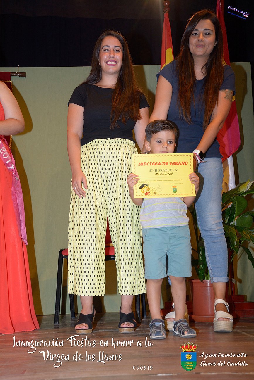 Fotografías realizadas durante el acto oficial de pregón e inauguración de las fisteas patronales en honor a la Virgen de los Llanos, que tenía lugar el pasado día 05 de Septiembre, uno de los actos enmarcados dentro del programa oficial con motivo de estas fiestas en la localidad de Llanos del Caudillo, Ciudad Real.